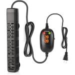 The AquaMiracle 100W Aquarium Heater with LED Thermostat from AquaMiracle provides precise temperature control through its advanced inverter technology and built-in chips, keeping the tank’s temperature within one degree Fahrenheit. The clear LED display allows for easy monitoring and adjustment of the desired temperature, ensuring the perfect environment for your aquatic pets. Safety is prioritized with automatic shut-off features that protect fish by turning the heater off if water levels drop or it overheats. The heater also remembers your last settings after a power outage, and its protective casing safeguards both your fish and the tank glass, simplifying maintenance.