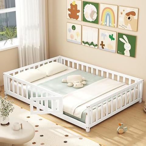 The Twin Montessori Floor Bed for Kids from offers a low-to-floor design that helps your child climb in and out easily, encouraging independence and comfort. It comes with sturdy guardrails and a lockable door, giving you peace of mind about safety while allowing you to adjust the door based on your child’s needs. This twin-size bed doubles as a play area when you add a soft mat, making it a versatile space for both rest and fun. Inspired by Montessori principles, it supports your child’s transition to sleeping alone by providing a secure yet open environment that boosts confidence and autonomy.