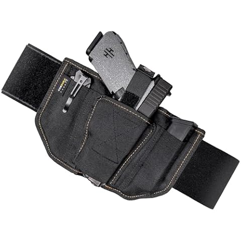 Belly Band Holster for Concealed Carry – Gun Holster for Men & Women, Ambidextrous Design, Double Mag Pouch for Most Pistols and Revolvers