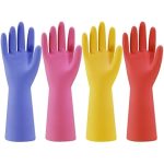 Rubber Cleaning Gloves for Dishwashing, 4 Pairs Reusable Kitchen Gloves for Washing Dishes and Household Cleaning, Colorful Dish Gloves with Flocked Lining and Non-Slip Grip, Pefect for Woman Men – M