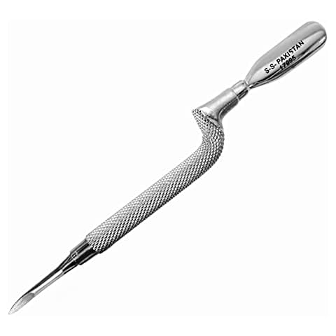 1pc Comfort Hold Easy Grip Ergonomically Angled Curved Cuticle Pusher Tool Heavy Duty 5" Double Ended Pusher & Cleaner – Premium Pakistan Stainless Steel