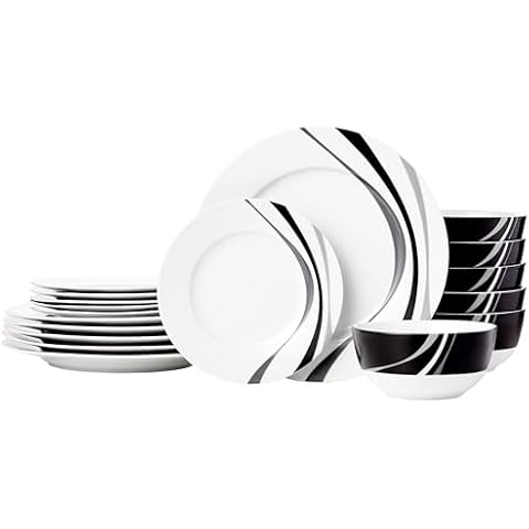 Amazon Basics Dinnerware Set, Microwave and Dishwasher Safe, Service for 6, 18-Piece Complete Kitchen, Plates, Dishes, Bowls, Swirl