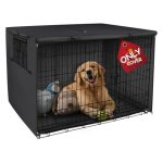 The Dog Crate Cover from is designed to fit most 24-inch standard wire dog crates, regardless of the number of doors (one, two, or three). This versatile cover enhances the appearance of your home by concealing the plain metal crate with a stylish printed design. Made from lightweight polyester with a protective PU coating, the cover blocks some sunlight and helps prevent cold drafts, ensuring your pet’s comfort. The installation process is straightforward, involving slipping the cover over the crate and securing it with hook-and-loop straps on all sides for a snug fit.