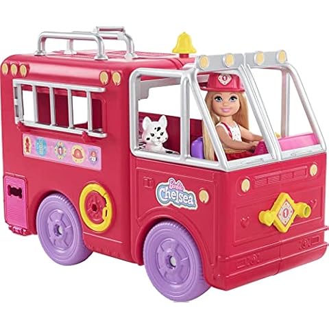 Barbie Chelsea Can Be Doll & Toy Fire Truck Playset with Blonde Small Doll, 2 Pets & 15+ Acessories, Open for Fire Station