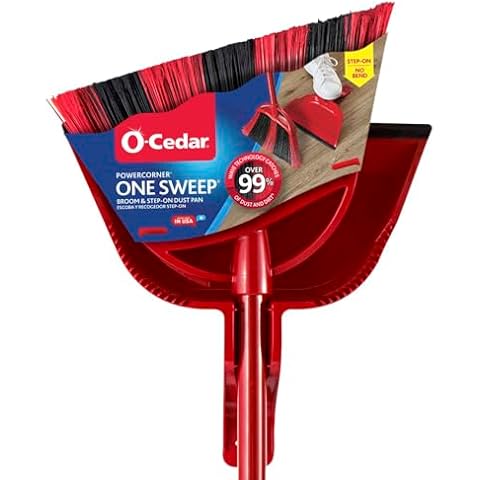 the O-Cedar Broom makes cleaning effortless with its innovative design that captures over 99% of dust and dirt in just one sweep. Its dual-bristle technology features firm bristles for corner cleaning and softer bristles that effectively gather dirt. You can forget about bending down to pick up debris, as the hands-free Step-On Dust Pan allows you to clean without touching the mess. Plus, the dust pan seals to the floor with foot pressure, ensuring no dirt is left behind. Enjoy quicker and easier cleaning with this convenient tool!