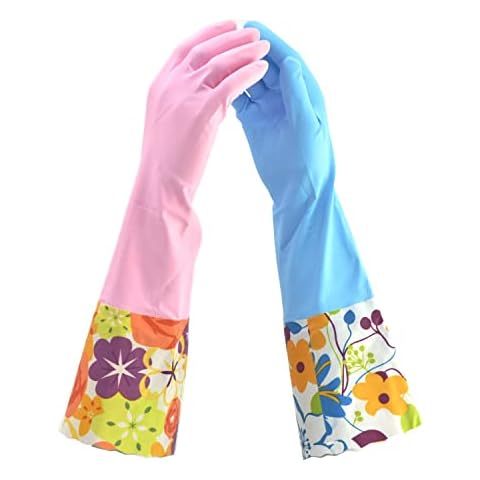 the Finnhomy unisex adult cleaning gloves are suitable for various household and outdoor activities such as kitchen cleaning, gardening, and pet care. The gloves are made of eco-friendly and premium vinyl latex-free materials, and have a 100% viscose lining and 100% latex-free coating. The gloves are 15 inches long, ensuring your arms stay dry and maintaining flexibility while moving your hands. Additionally, the gloves have a non-slip design on the palm and fingers, providing better grip and control.