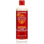 OGX Frizz-Free + Keratin Smoothing Oil Conditioner is a multi-tasking conditioner that combines five benefits into one product. It helps put frizz at ease, strengthens strands, improves flexibility, protects against humidity, and adds shine. It is infused with keratin, argan oil, and ceramides, and has a tropical orange, island pineapple, and golden amber scent. It is best used on wet, shampooed hair and left for 3-5 minutes before rinsing.