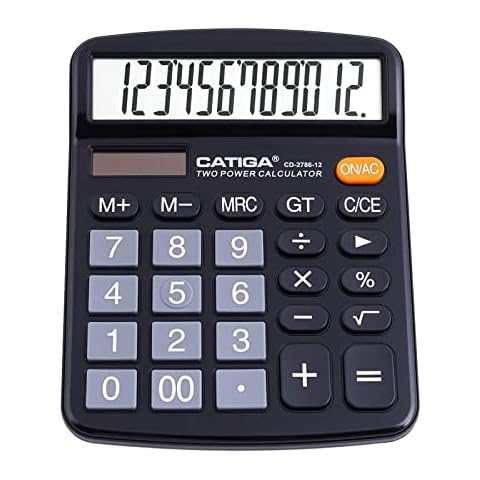 CATIGA 12 Digit Desk Calculator, Desktop Calculators with Large LCD Display & Big Buttons, Dual Power Solar & Battery, Standard Basic 4 Function Calculator for School, Office, Home