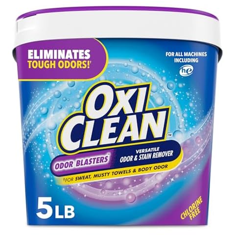 get rid of tough odors and stains from laundry and around the house with OxiClean Odor Blasters Odor & Stain Remover Powder. The 5 lb container provides enough powder to last for multiple uses. This chlorine-free and color-safe laundry stain remover and odor eliminator is suitable for use in all washing machines, including High Efficiency (HE). The classic clean scent leaves clothes smelling fresh and clean.