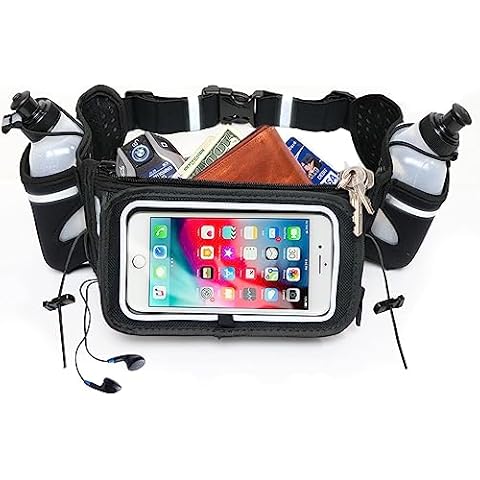 Hydration Running Belt with 2x10oz Bottles – Water Belts for Woman and Men – iPhone Belt for Any Phone Size – Fuel Marathon Waist Pouch for Runners – Jogging Cycling Biking